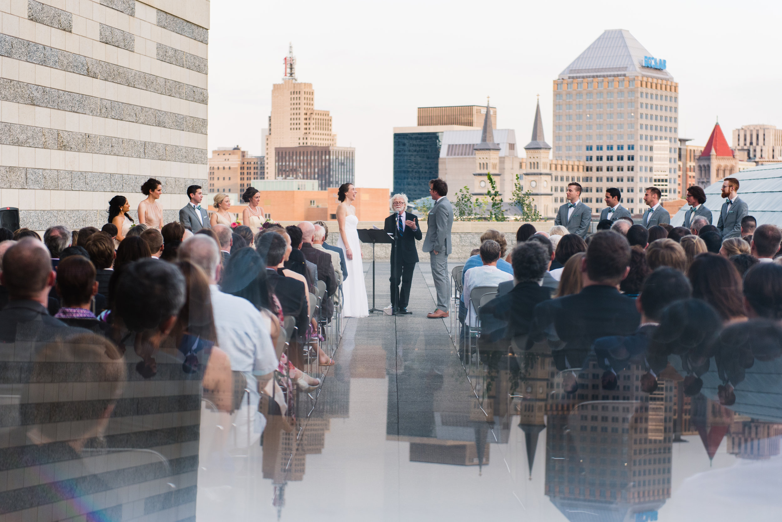 On a beautiful windy September day, Holly and Steve decided to get married at the Minnesota History Center in downtown St. Paul! They are one of the most fun and easygoing couples I have had the joy to serve. We started their day at Kellogg Mall Park for their first look. Steve was quick to show off his bright green shoelaces, excitingly telling us that he has a shoe lace guy in Canada. (Yeah he has connections, message me if you need any assortment of colored shoelaces and I will see what I can do!) Holly was dolled up in a simple sweetheart dress and white flowers in her hair. It was a perfect representation of her spirit, simply elegant and sweet. All morning Holly and Steve were bubbling with energy for their wedding day! It was finally here; it is a cool feeling seeing everything you have been planning actually happen!